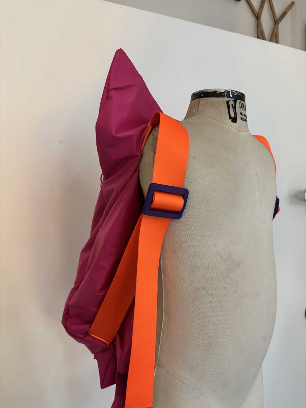 O NHAC! Foi desenvolvido para incentivar a reconexão das crianças com a cozinha e os alimentos, despertando curiosidade e autonomia. Partindo da problemática da alimentação seletiva infantil, o projeto cria mediadores lúdicos — os monstrinhos — que acompanham a criança em cada etapa da alimentação. Nesse contexto, NHAC! transforma o momento das compras em uma experiência educativa e divertida, permitindo que a criança selecione frutas e legumes e os guarde em bolsos internos, alimentando o monstrinho e preparando-o para a descoberta dos sabores. A mochila foi projetada com ergonomia adequada, nylon emborrachado e bolsos de tela mesh. O processo envolveu pesquisa antropométrica, prototipagem e testes de uso, resultando em um produto colorido, interativo e funcional, que aproxima a criança da alimentação saudável.