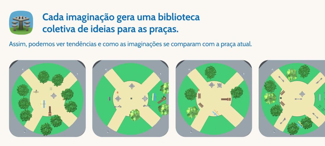 rePraça é uma plataforma virtual de imaginação de espaços públicos. O projeto possibilita que as praças sejam pensadas e reimaginadas pelo público que as frequenta. Assim, cidadãos podem criar, compartilhar e trocar entre si o seu próprio olhar a respeito das praças de uma cidade, gerando uma biblioteca de ideias para esses espaços.”