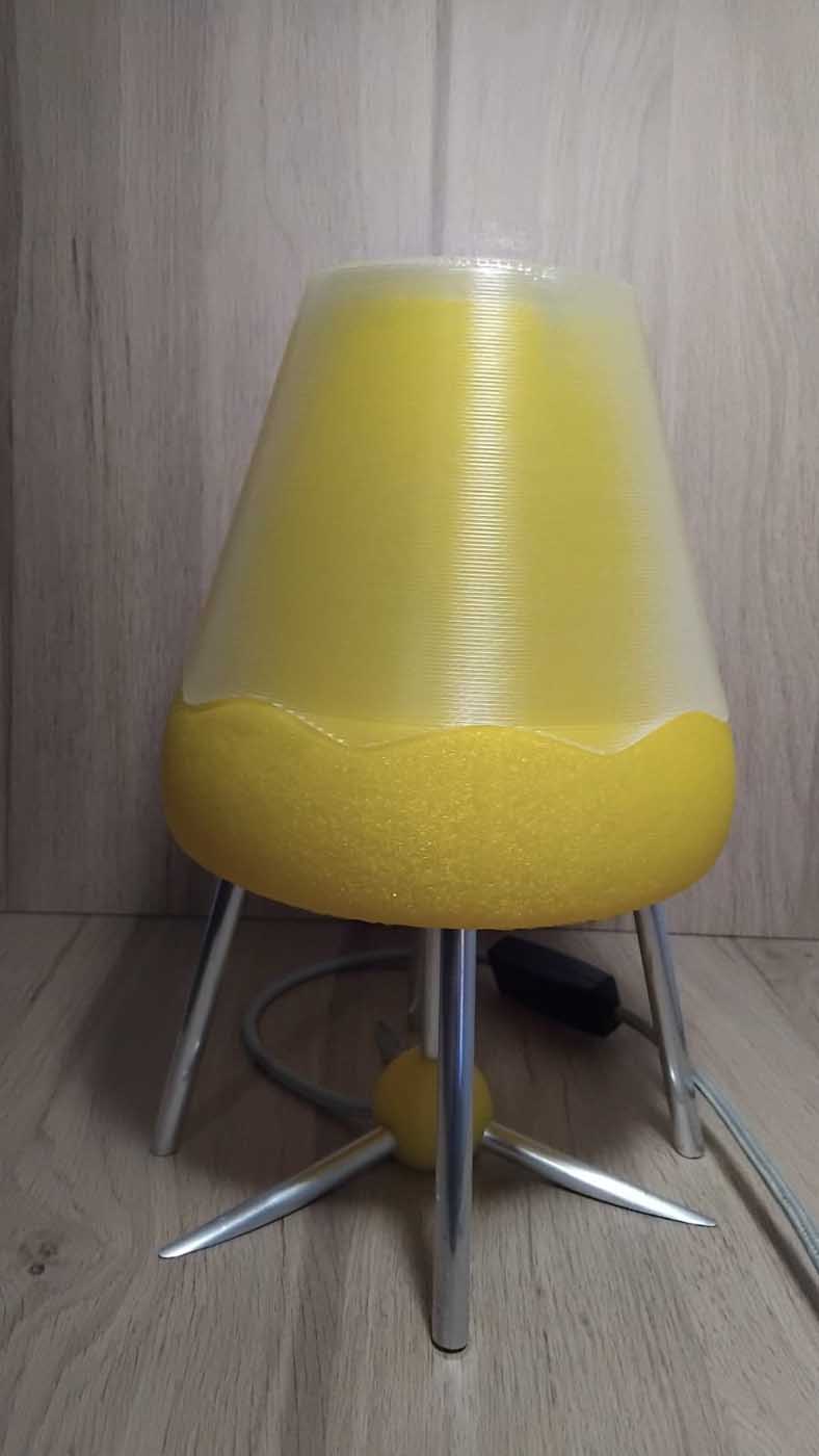 Lançada em linhas de exemplares limitados e numerados, cada luminária recebe montagem artesanal, reforçando sua singularidade e cuidado em cada detalhe. As cúpulas foram impressas com bicos de maiores diâmetros, enquanto a base foi impressa com bico menor, permitindo transformar as linhas de camada da impressão 3D, frequentemente vistas como defeito, em efeito óptico. No diálogo entre as cúpulas, a interna colorida e a externa transparente surge o efeito moiré, revelando padrões dinâmicos que acrescentam cor e movimento ao ambiente, convidando à contemplação e à pausa no cotidiano.